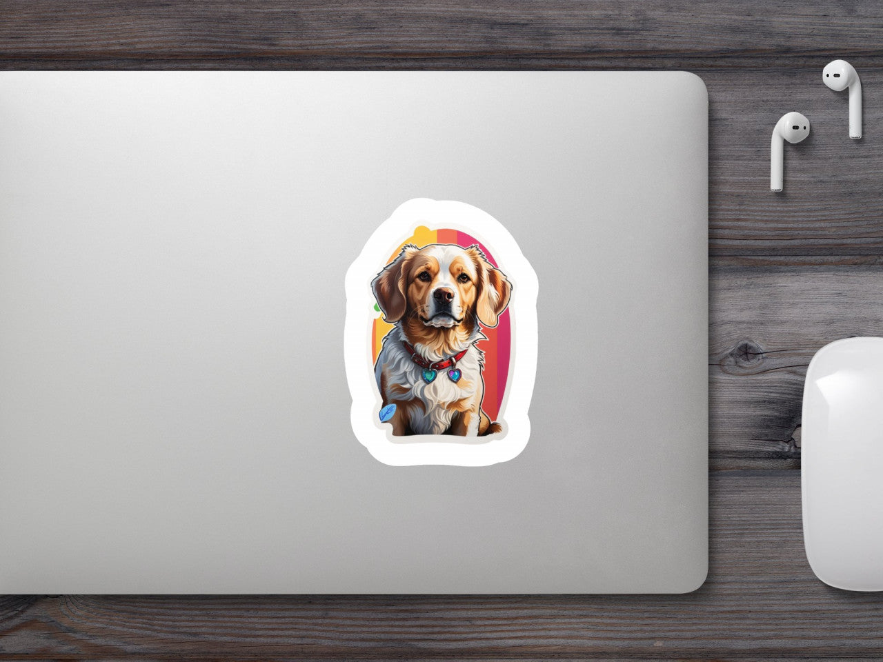Set 2 bucati, Sticker decorativ, Catel brittany cu zgarda si medalion, Rezistent la apa, NO4981, 16 cm, Multicolor