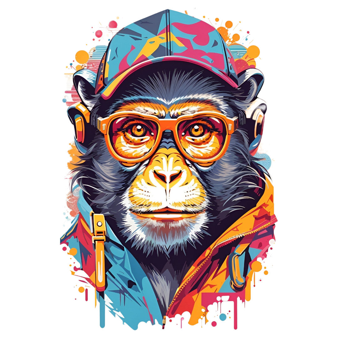 Set 2 bucati, Sticker decorativ, Cimpanzeul cu ochelari si sapca, Rezistent la apa, NO6183, 16 cm, Multicolor