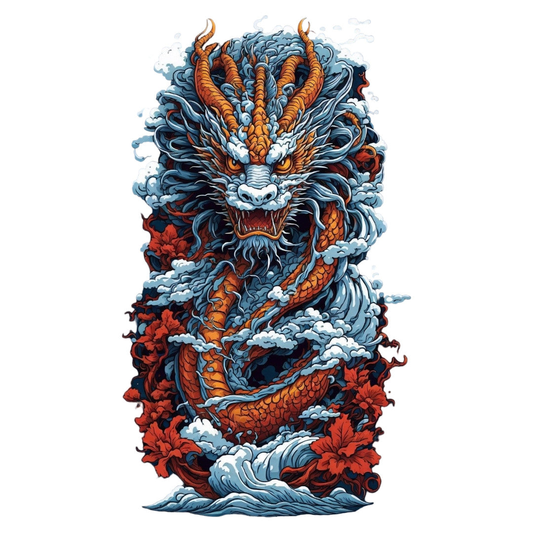 Set 2 bucati, Sticker decorativ, Dragonul japonez, Rezistent la apa, NO6451, 16 cm, Multicolor