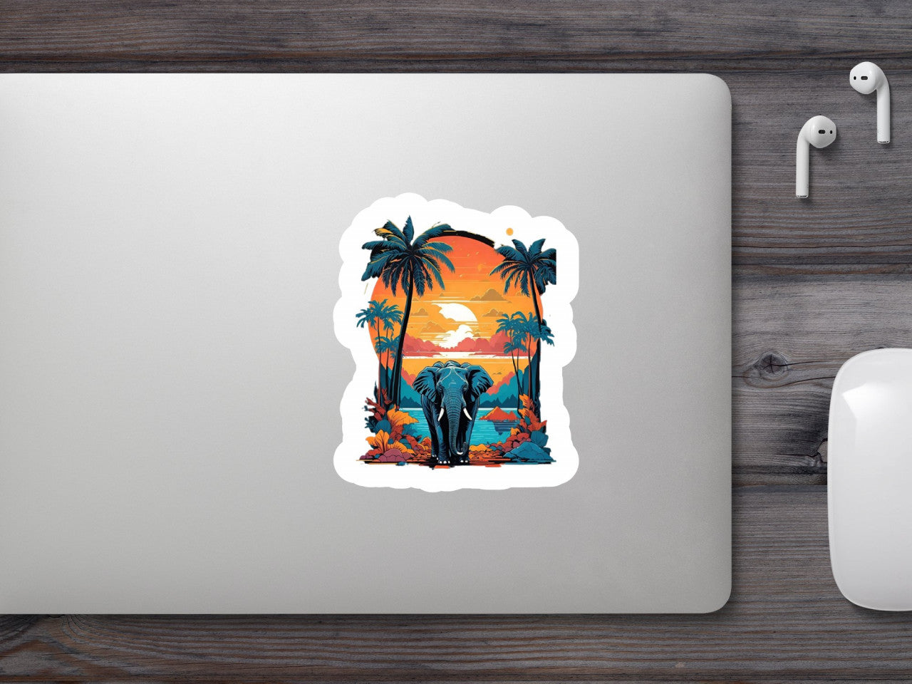 Set 2 bucati, Sticker decorativ, Elefantul in jungla, Rezistent la apa, NO6432, 16 cm, Multicolor