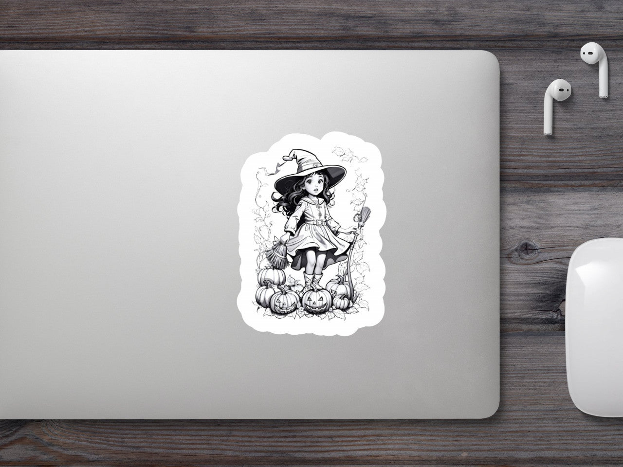 Set 2 bucati, Sticker decorativ, Fetita halloween, Rezistent la apa, NO6329, 16 cm, Multicolor