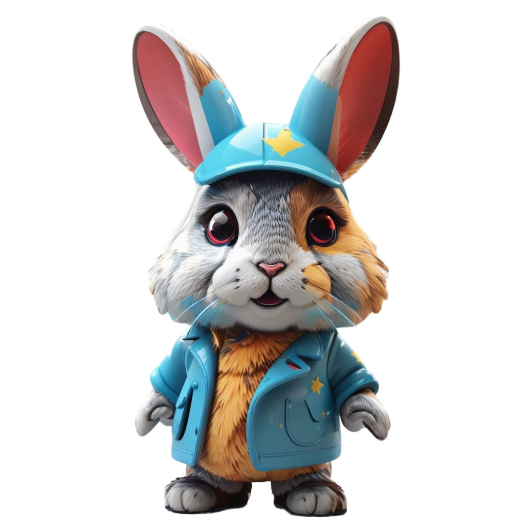 Set 2 bucati, Sticker decorativ, Iepure cu sapca si jacheta, Rezistent la apa, NO6941, 16 cm, Multicolor