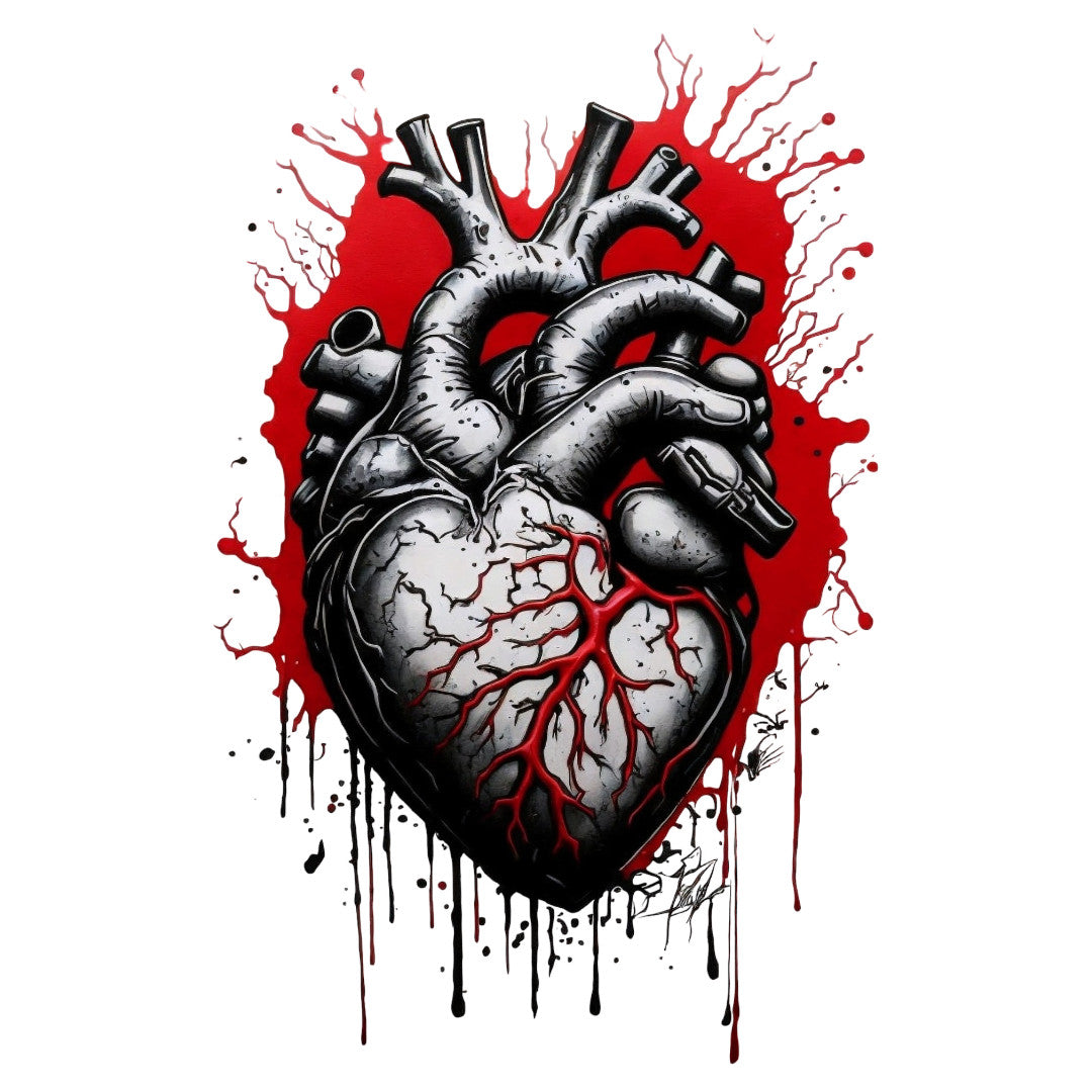 Set 2 bucati, Sticker decorativ, Inima insangerata, Rezistent la apa, NO6619, 16 cm, Multicolor