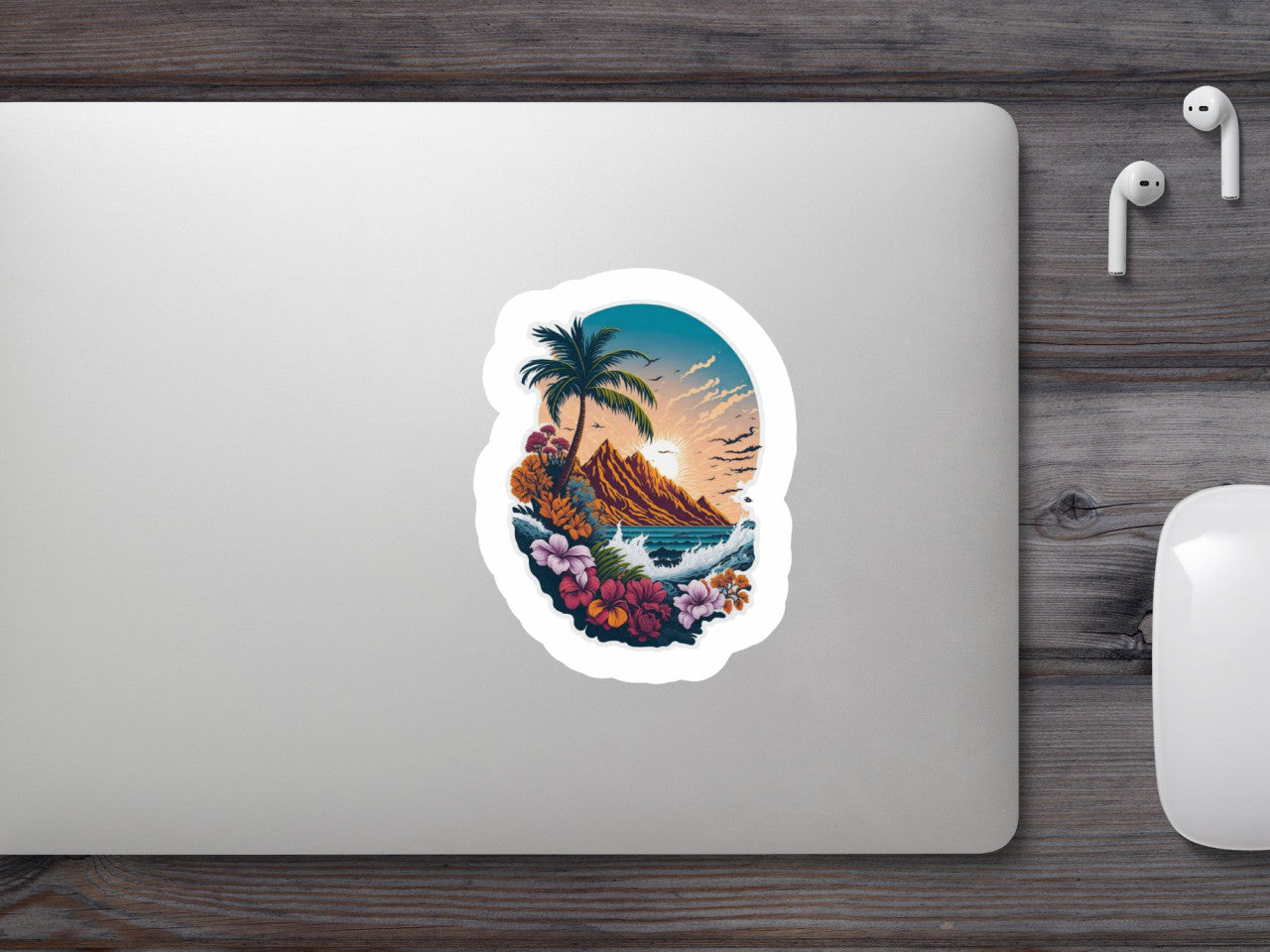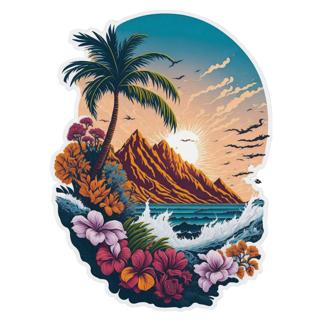 Set 2 bucati, Sticker decorativ, Peisaj cu palmieri, Rezistent la apa, NO6289, 16 cm, Multicolor