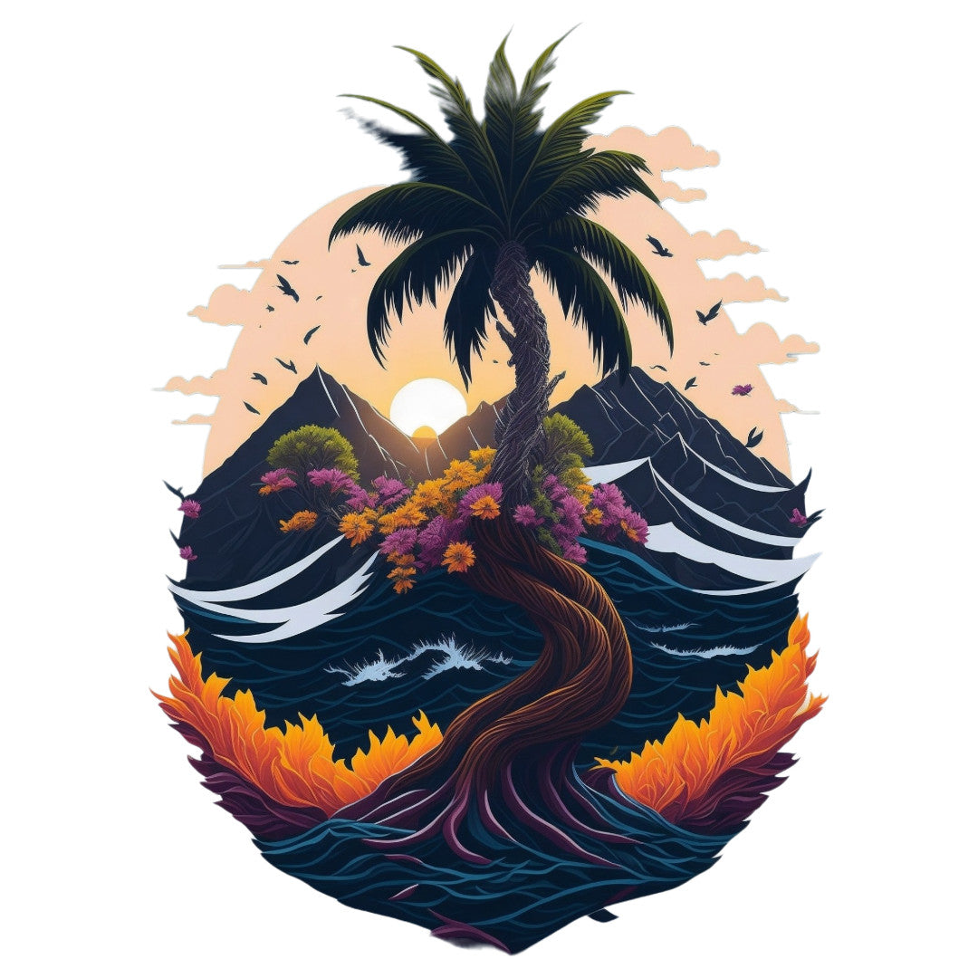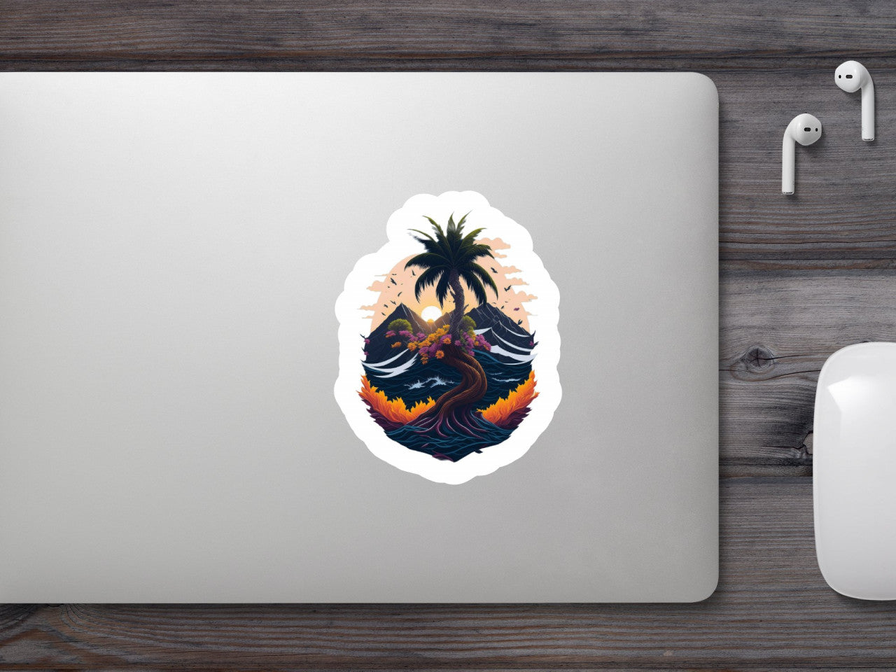 Set 2 bucati, Sticker decorativ, Peisaj de munte cu palmieri, Rezistent la apa, NO6172, 16 cm, Multicolor