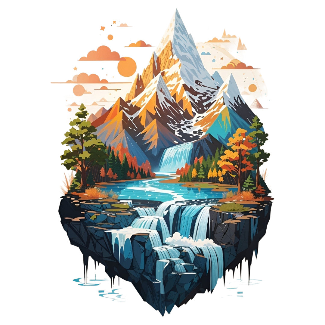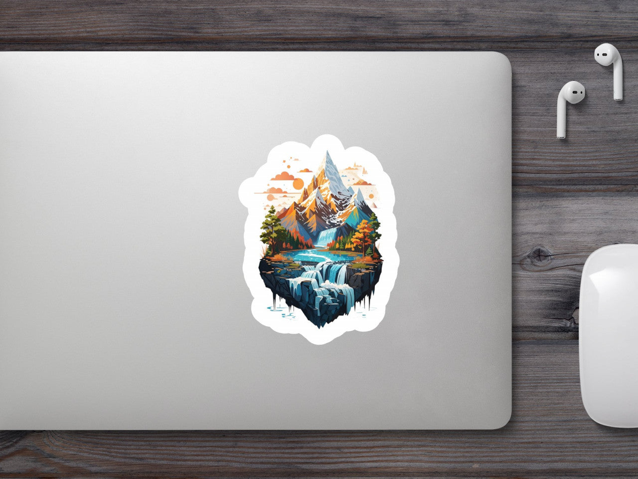 Set 2 bucati, Sticker decorativ, Peisaj de munte cu rau, Rezistent la apa, NO6345, 16 cm, Multicolor