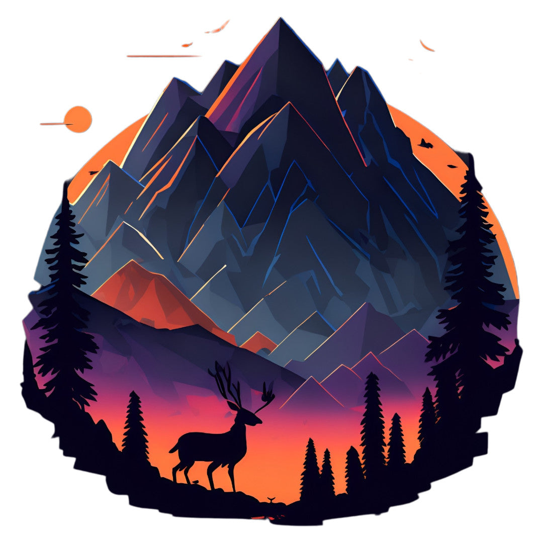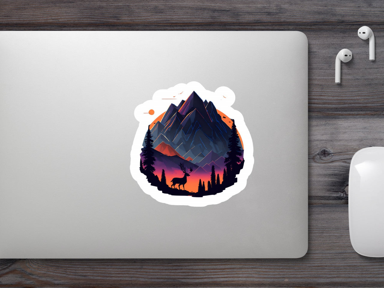 Set 2 bucati, Sticker decorativ, Peisaj de munte, Rezistent la apa, NO6285, 16 cm, Multicolor