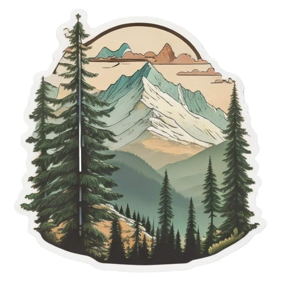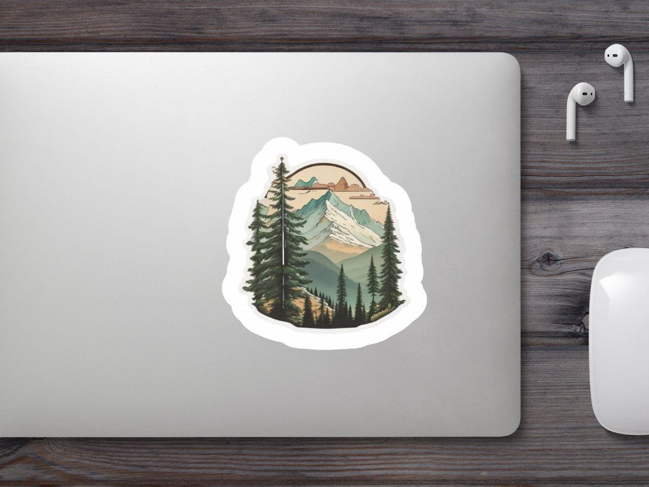 Set 2 bucati, Sticker decorativ, Peisaj de munte, Rezistent la apa, NO7040, 16 cm, Multicolor