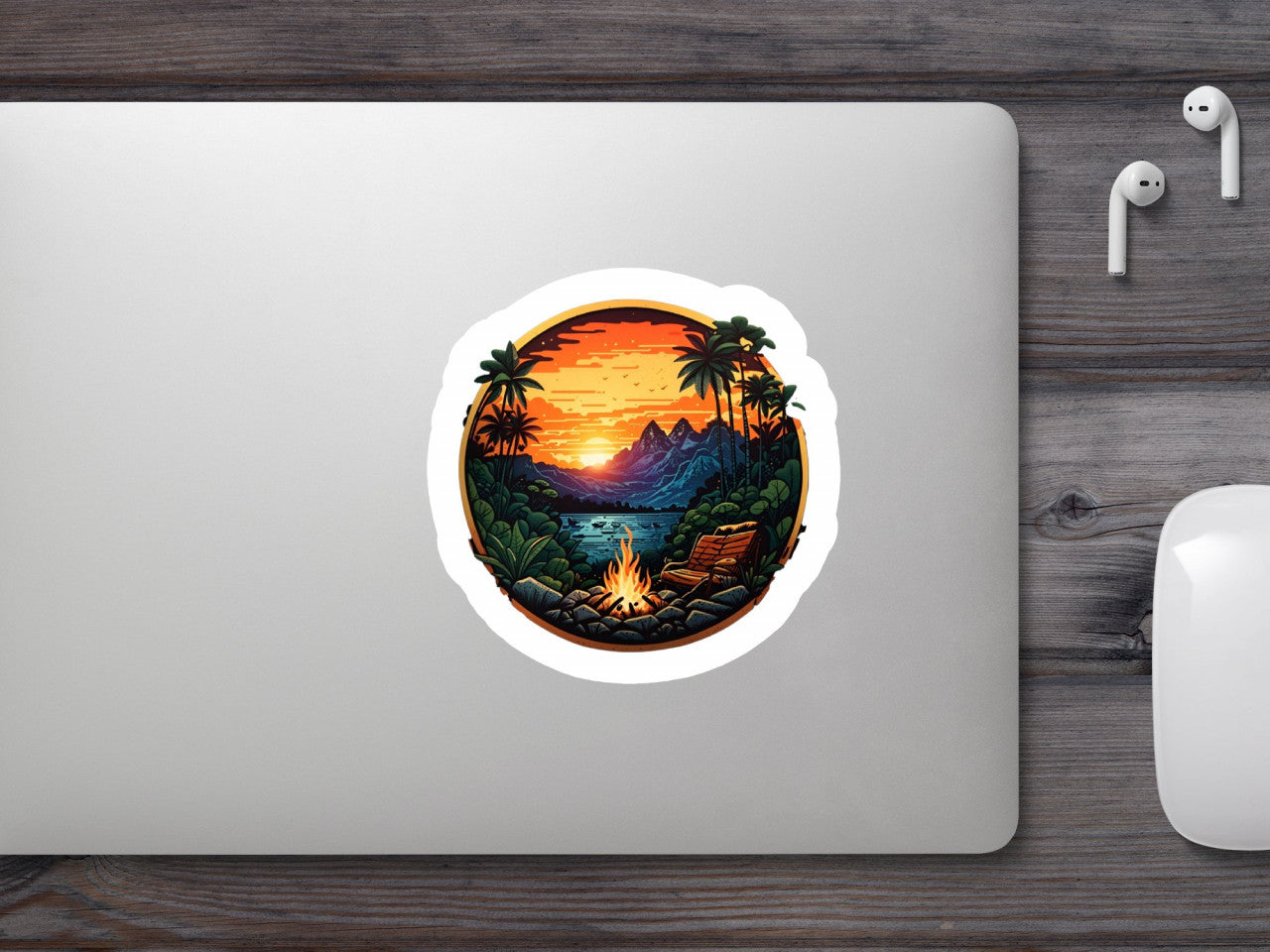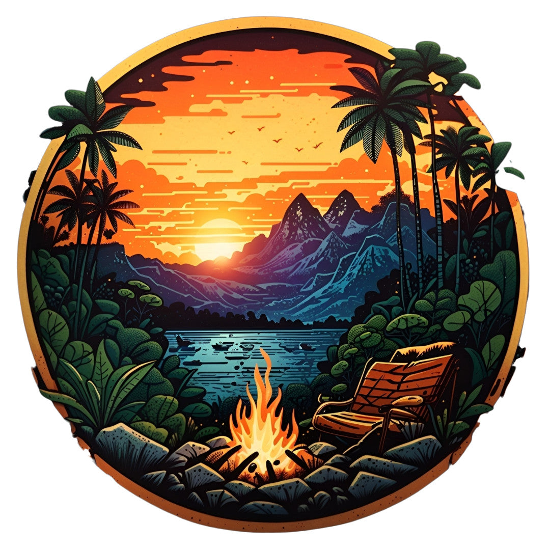 Set 2 bucati, Sticker decorativ, Peisaj in padure la apus, Rezistent la apa, NO6296, 16 cm, Multicolor
