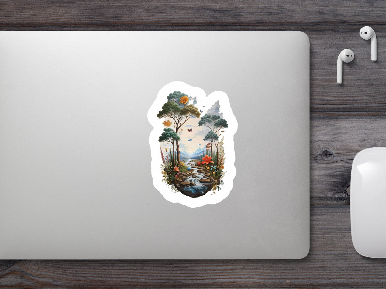 Set 2 bucati, Sticker decorativ, Peisaj pe rau, Rezistent la apa, NO6507, 16 cm, Multicolor
