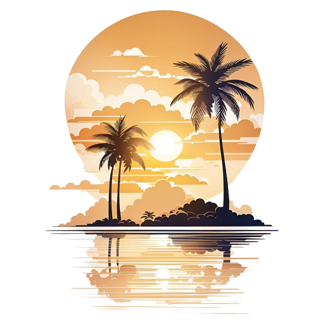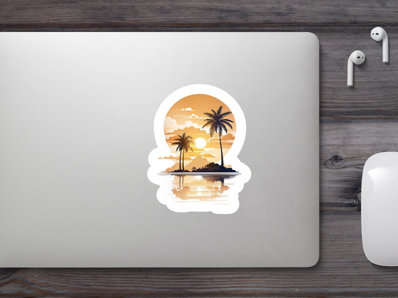Set 2 bucati, Sticker decorativ, Peisaj rasarit de soare, Rezistent la apa, NO6277, 16 cm, Multicolor