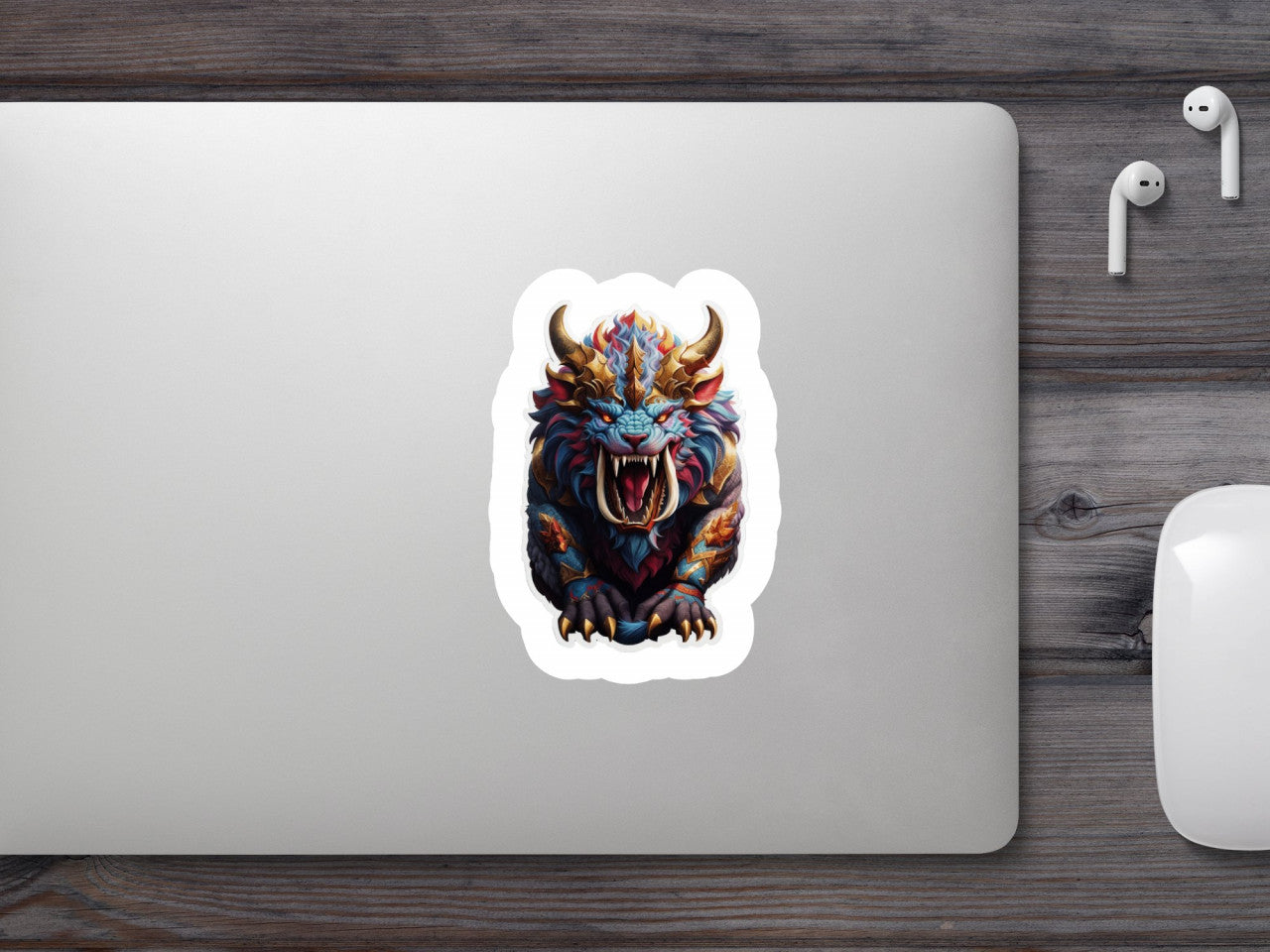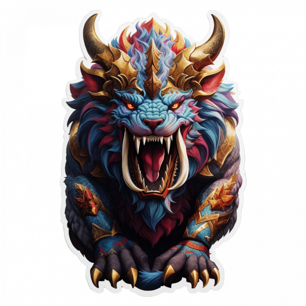 Set 2 bucati, Sticker decorativ, Personaj mitologic Behemoth furios, Rezistent la apa, NO4759, 16 cm, Multicolor