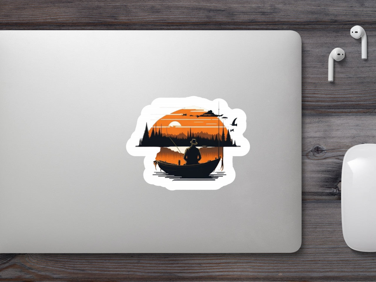 Set 2 bucati, Sticker decorativ, Pescar la apus, Rezistent la apa, NO6960, 16 cm, Multicolor