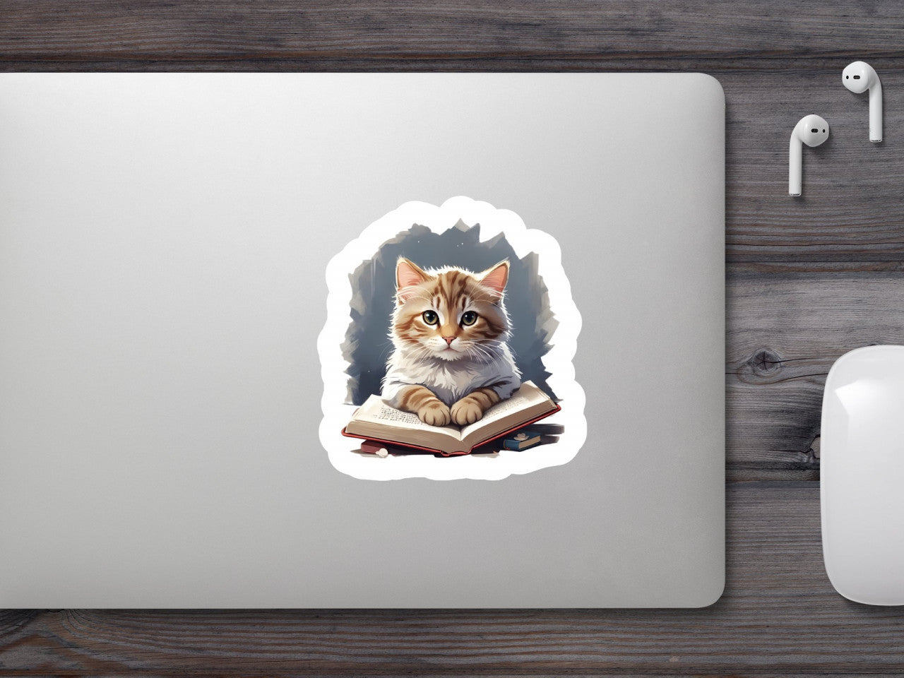 Set 2 bucati, Sticker decorativ, Pisicuta cititoare, Rezistent la apa, NO6520, 16 cm, Multicolor