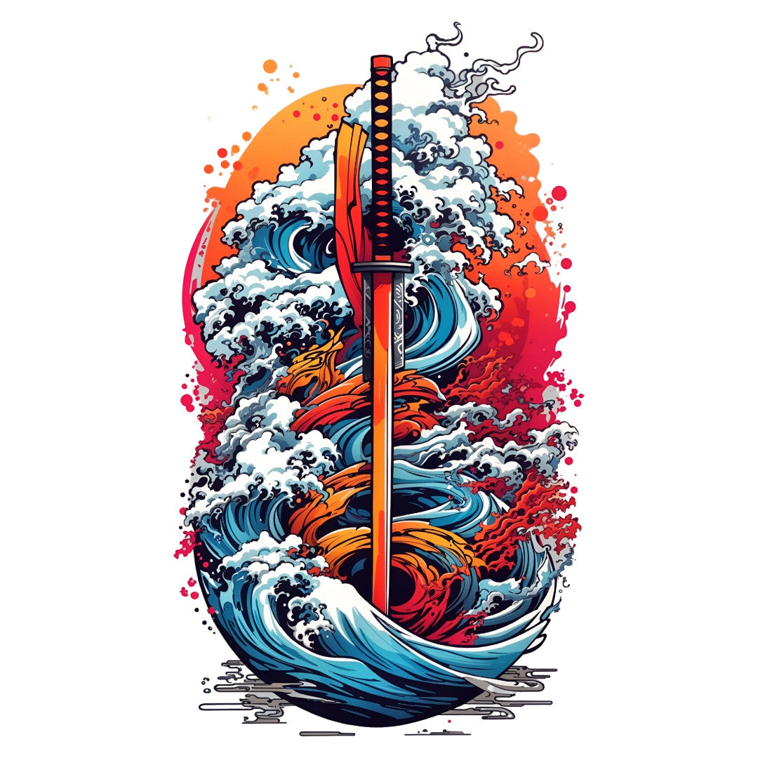 Set 2 bucati, Sticker decorativ, Sabie katana, Rezistent la apa, NO6452, 16 cm, Multicolor