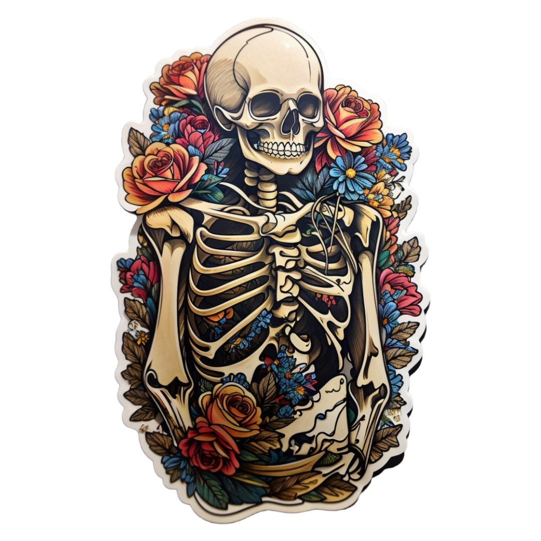 Set 2 bucati, Sticker decorativ, Schelet cu trandafiri, Rezistent la apa, NO6954, 16 cm, Multicolor