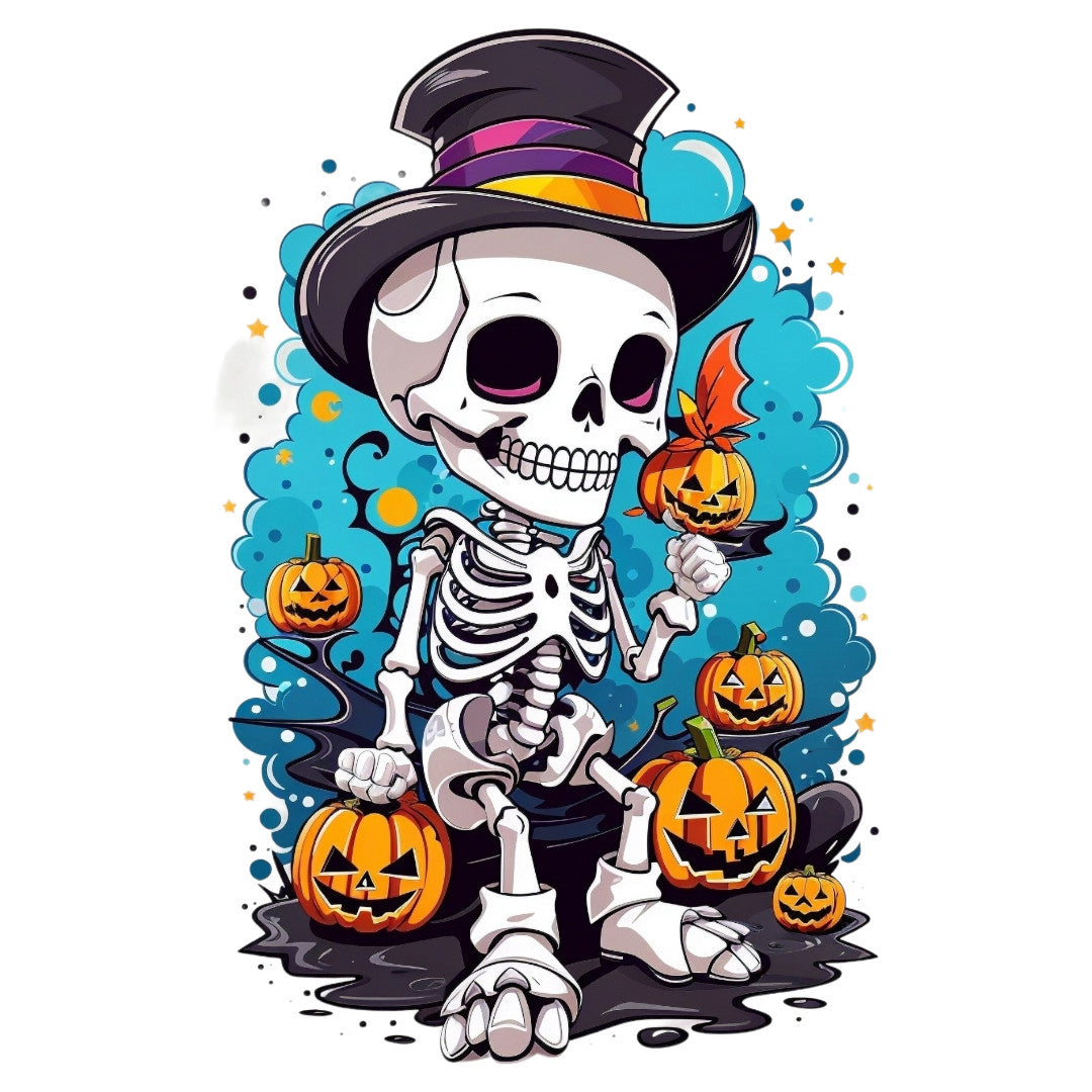 Set 2 bucati, Sticker decorativ, Scheleton cu joben, Rezistent la apa, NO6529, 16 cm, Multicolor