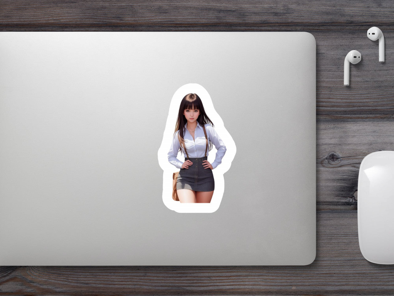 Set 2 bucati, Sticker decorativ, Scolarita bruneta, Rezistent la apa, NO6485, 16 cm, Multicolor