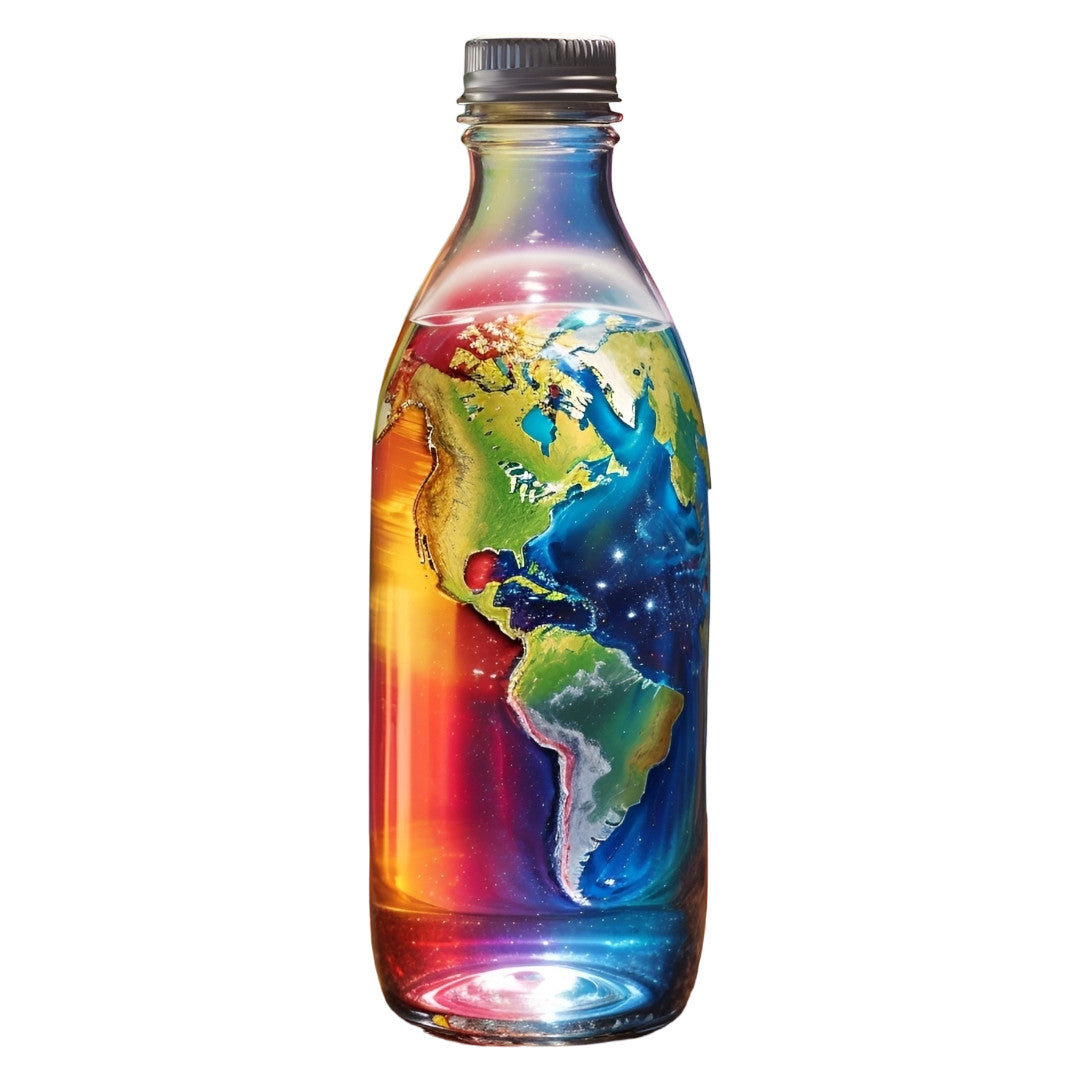 Set 2 bucati, Sticker decorativ, Toata lumea intr-o sticla, Rezistent la apa, NO6202, 16 cm, Multicolor