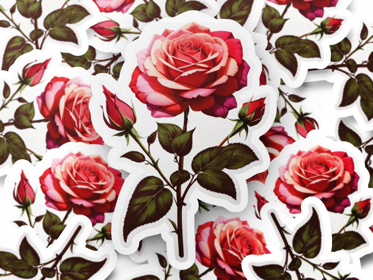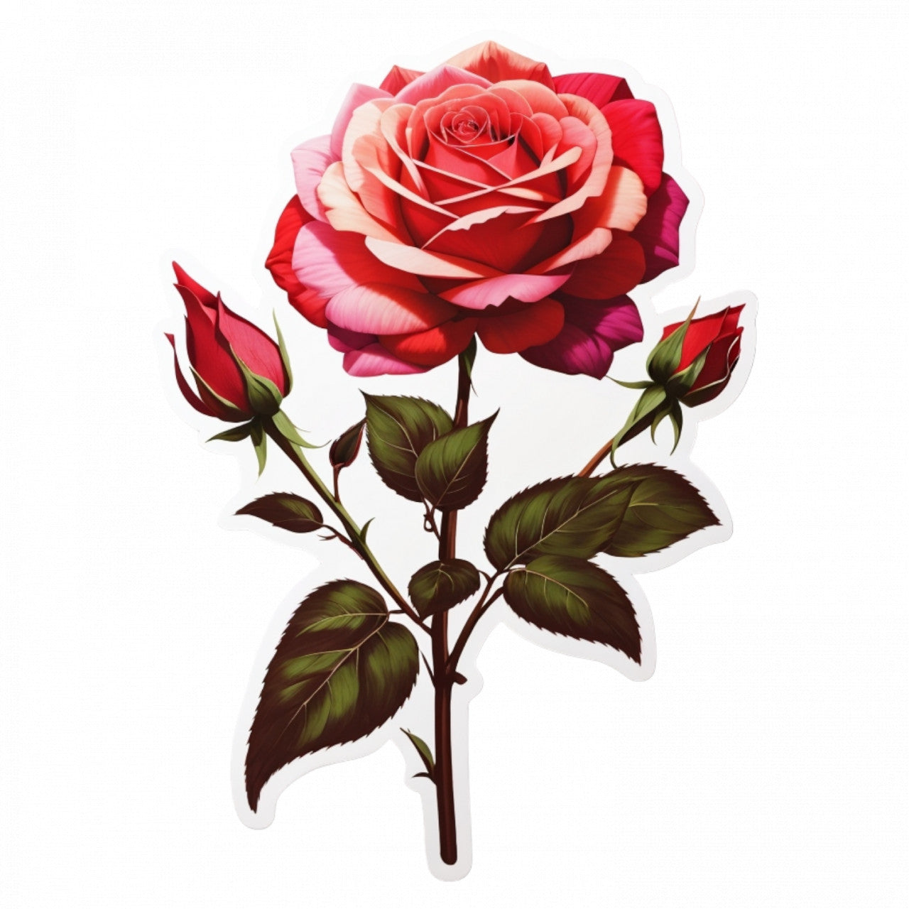 Set 2 bucati, Sticker decorativ, Trandafir cu boboci si frunze, Rezistent la apa, NO5849, 16 cm, Multicolor