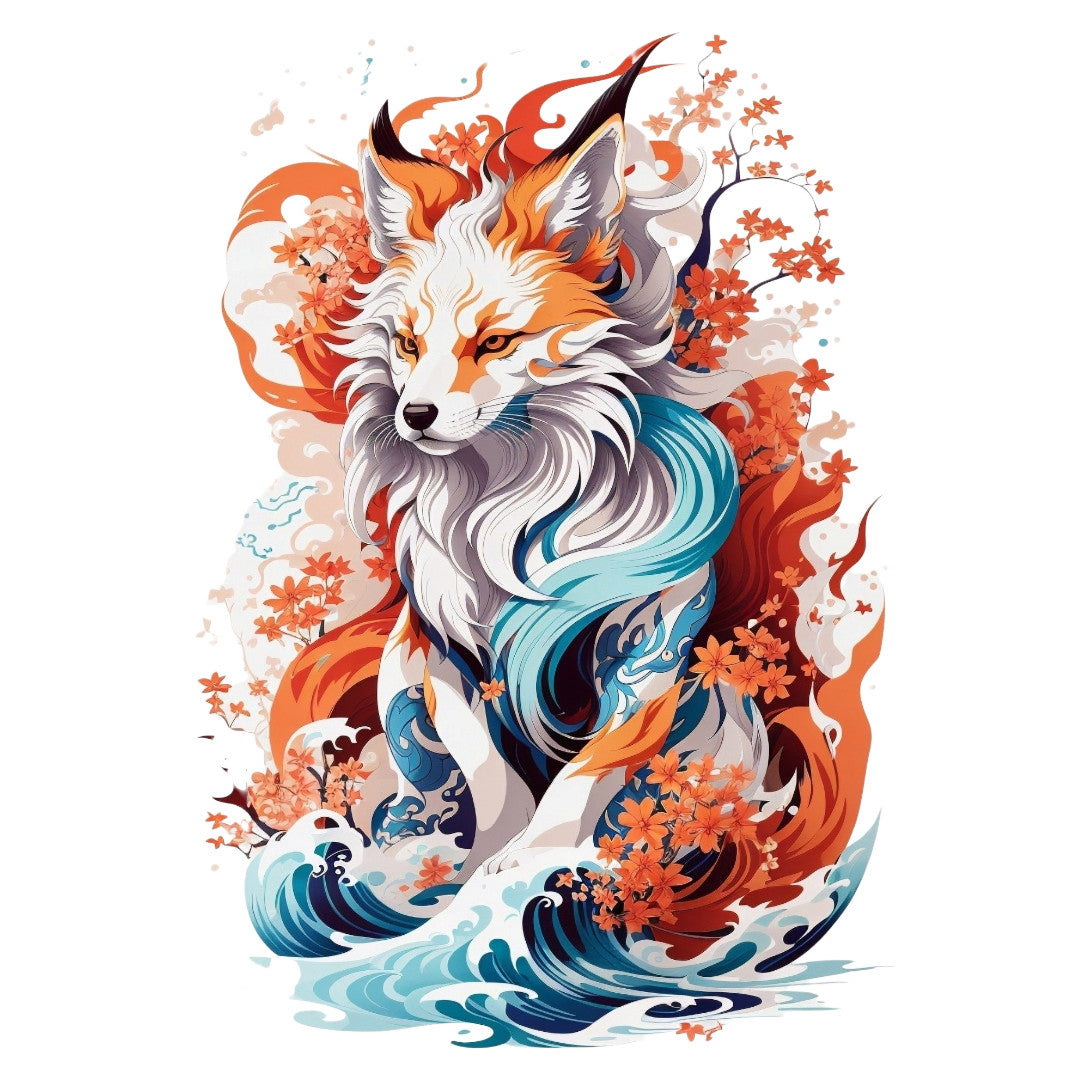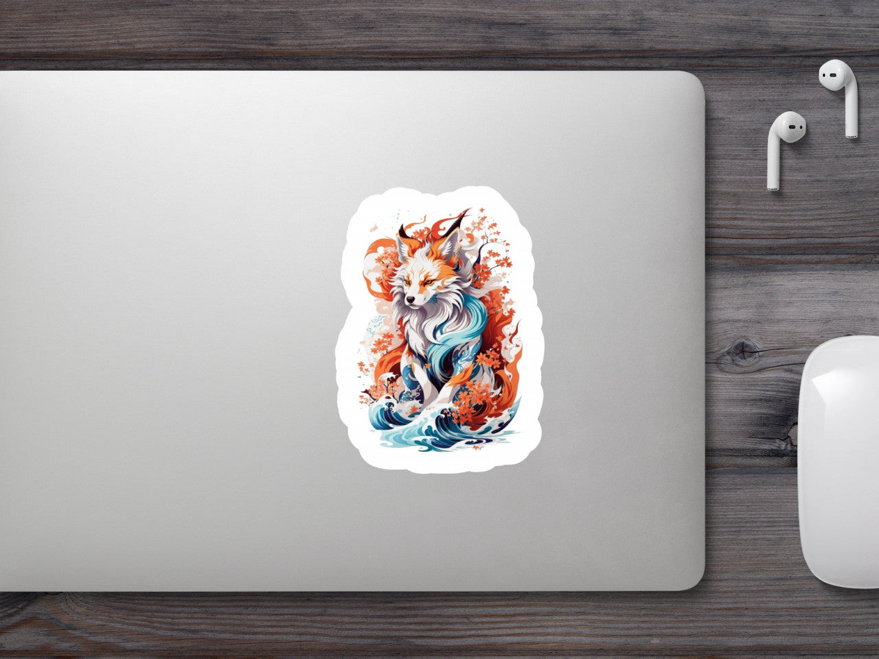 Set 2 bucati, Sticker decorativ, Vulpea in valuri, Rezistent la apa, NO6468, 16 cm, Multicolor