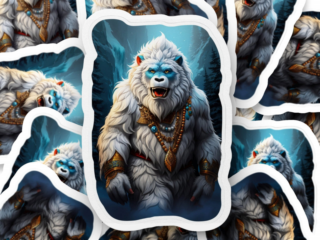 Set 2 bucati, Sticker decorativ, Yeti cu margele, Rezistent la apa, NO6094, 16 cm, Multicolor