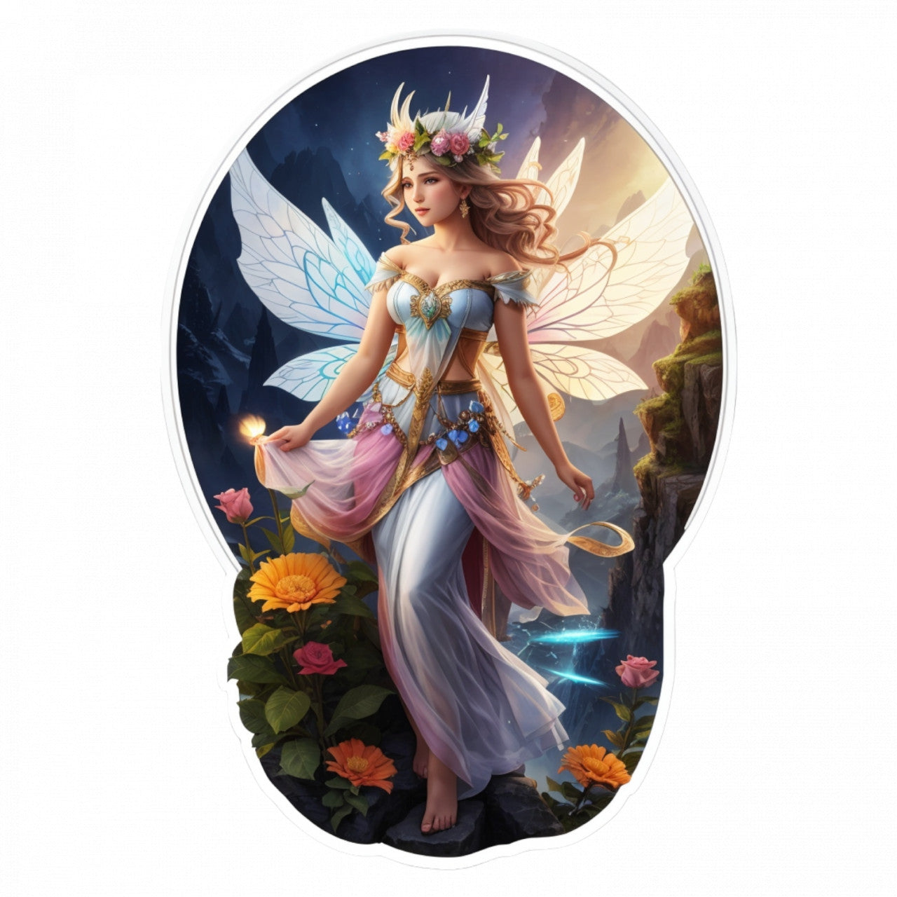Set 2 bucati, Sticker decorativ, Zana diafana, Rezistent la apa, NO5243, 16 cm, Multicolor