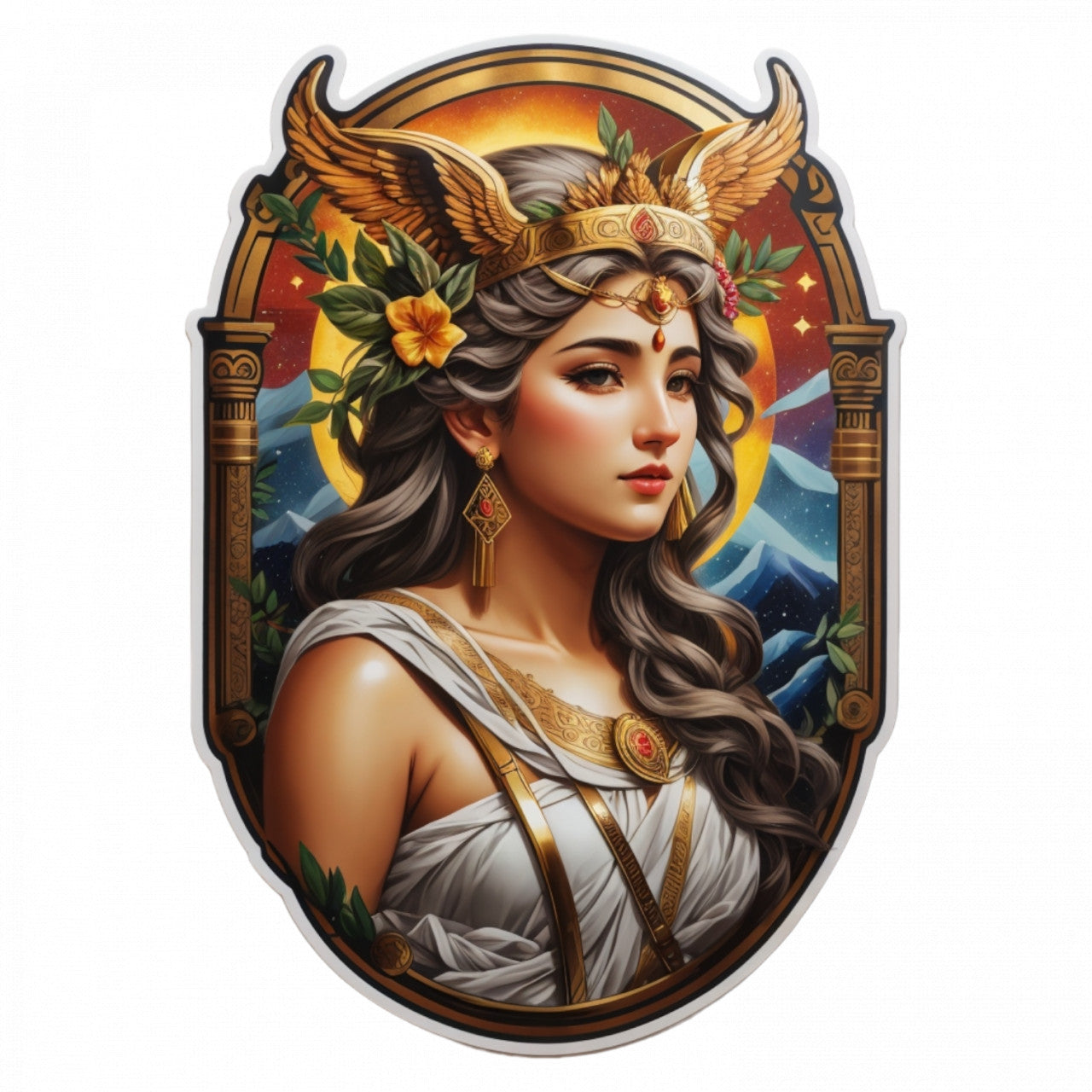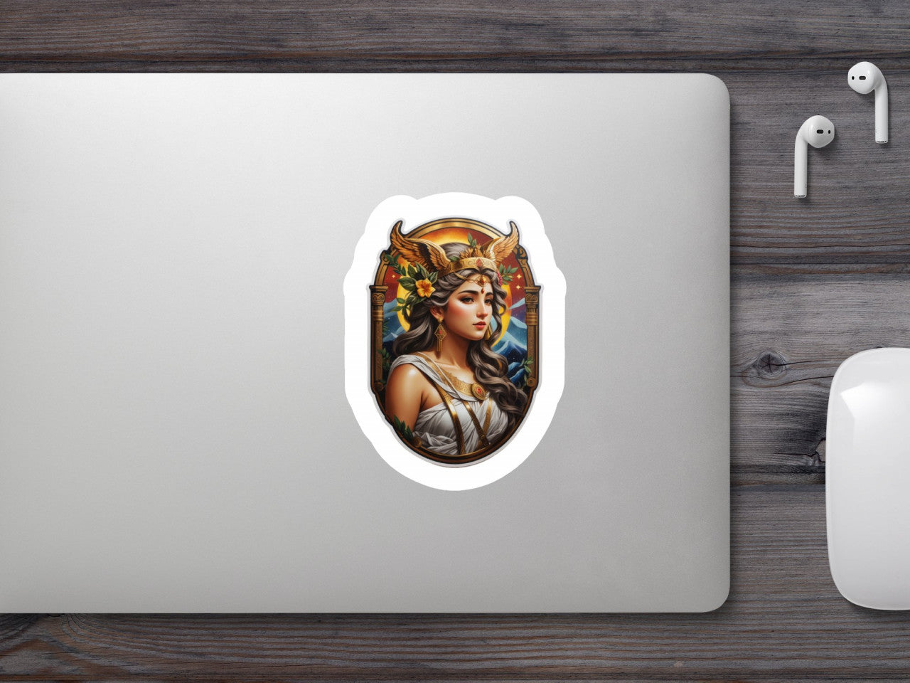 Set 2 bucati, Sticker decorativ, Zeita greaca Artemis bust, Rezistent la apa, NO4846, 16 cm, Multicolor