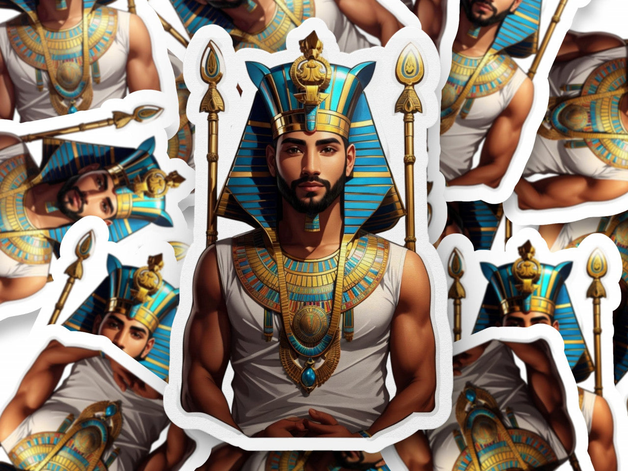 Set 2 bucati, Sticker decorativ, Zeul egiptean Ammon cu sceptru, Rezistent la apa, NO4896, 16 cm, Multicolor