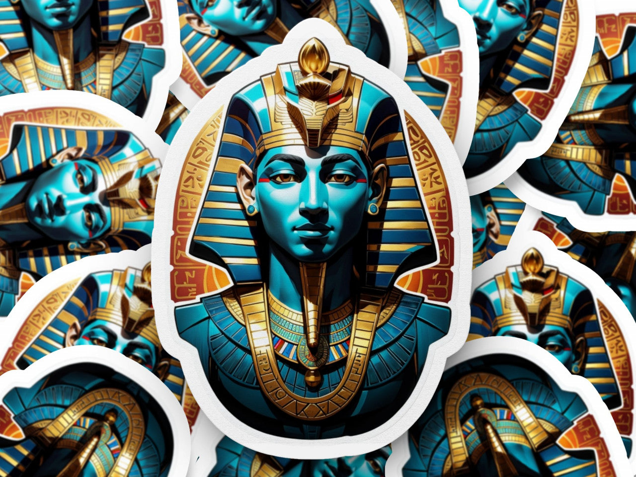 Set 2 bucati, Sticker decorativ, Zeul egiptean Ammon sarcofag , Rezistent la apa, NO4897, 16 cm, Multicolor