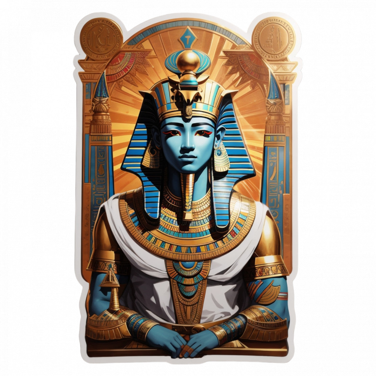Set 2 bucati, Sticker decorativ, Zeul egiptean Min pe tron, Rezistent la apa, NO5616, 16 cm, Multicolor