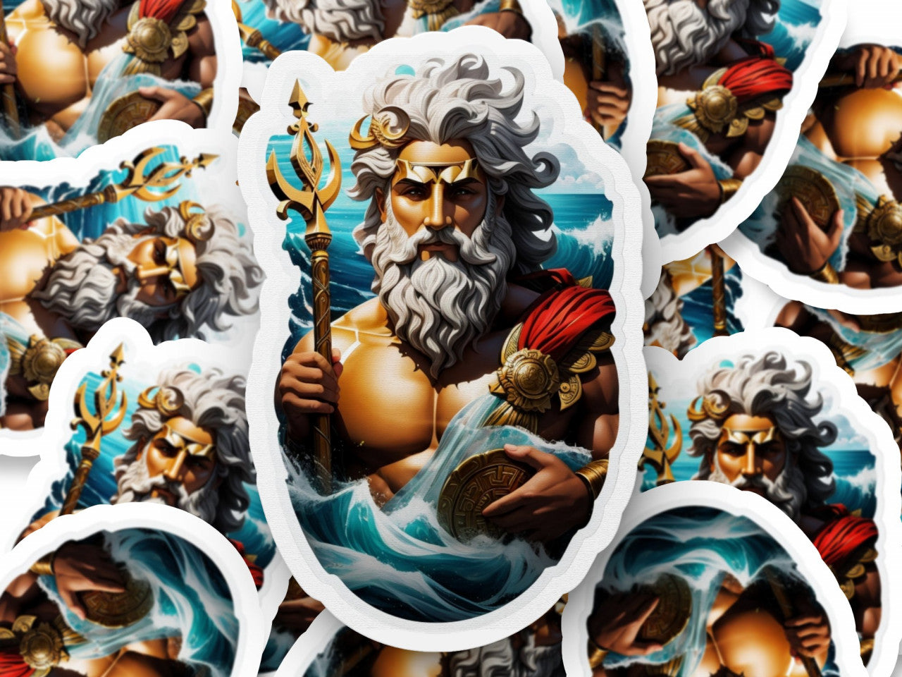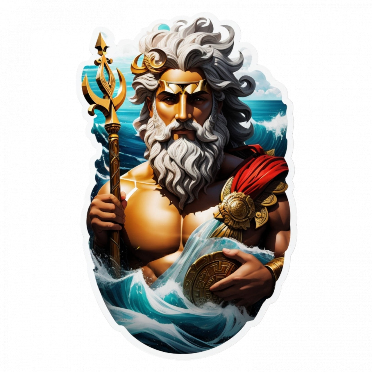Set 2 bucati, Sticker decorativ, Zeul egiptean Oceanus cu sulita, Rezistent la apa, NO5677, 16 cm, Multicolor