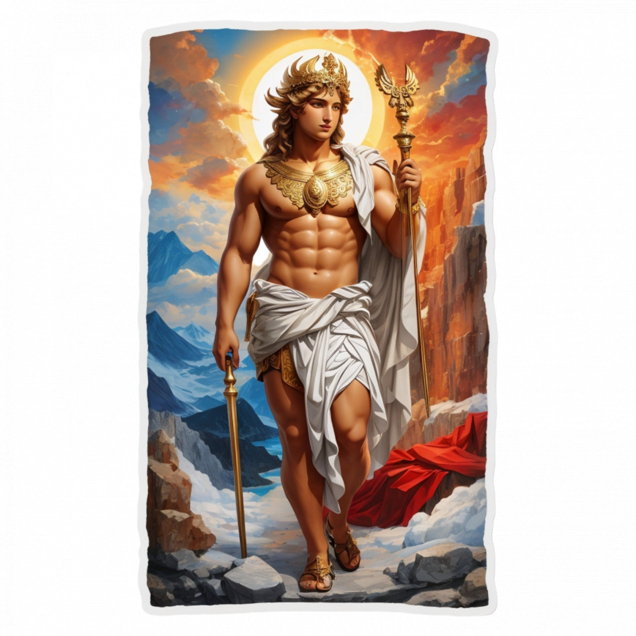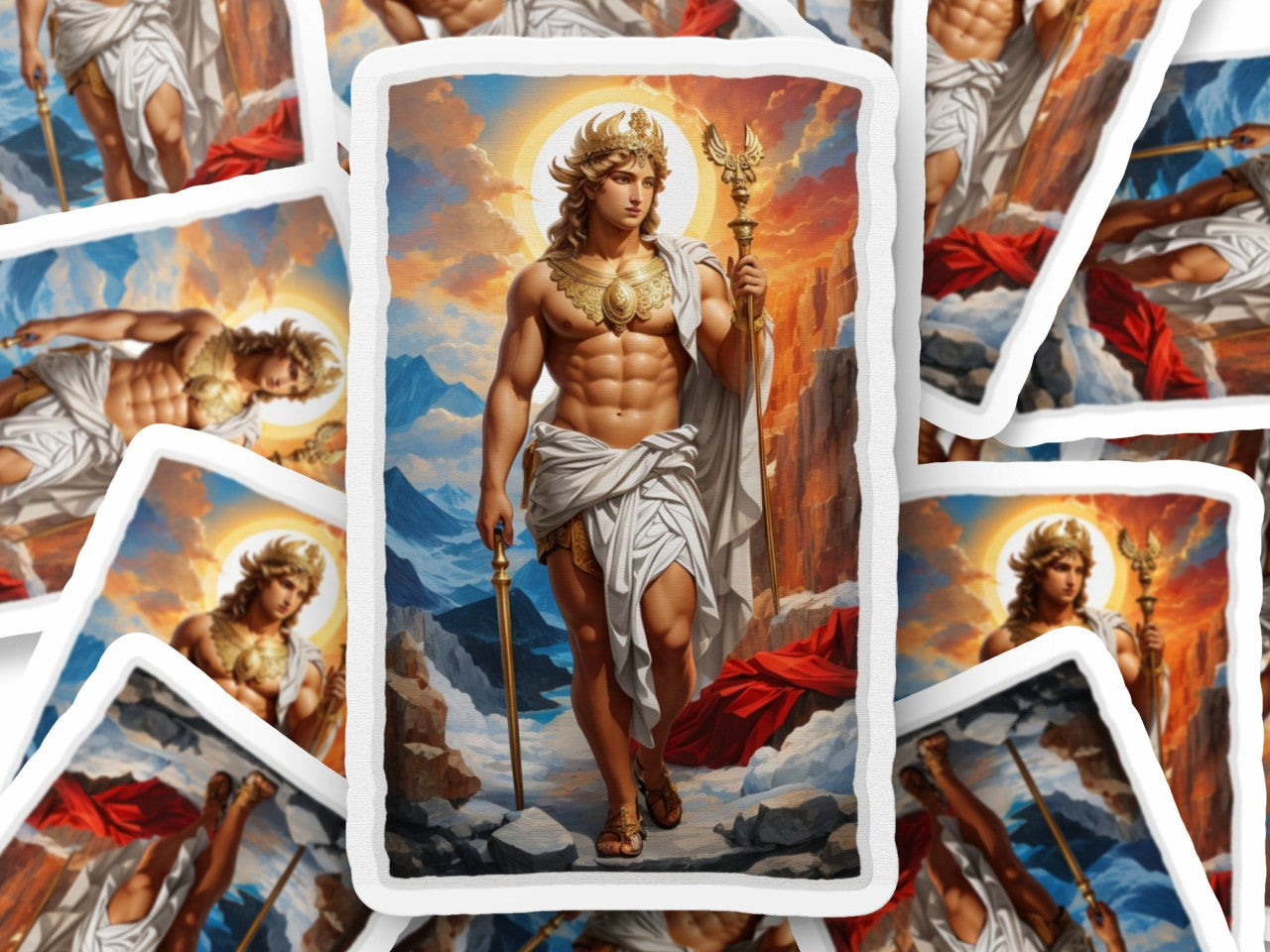 Set 2 bucati, Sticker decorativ, Zeul grec Apollo cu sceptru, Rezistent la apa, NO4864, 16 cm, Multicolor