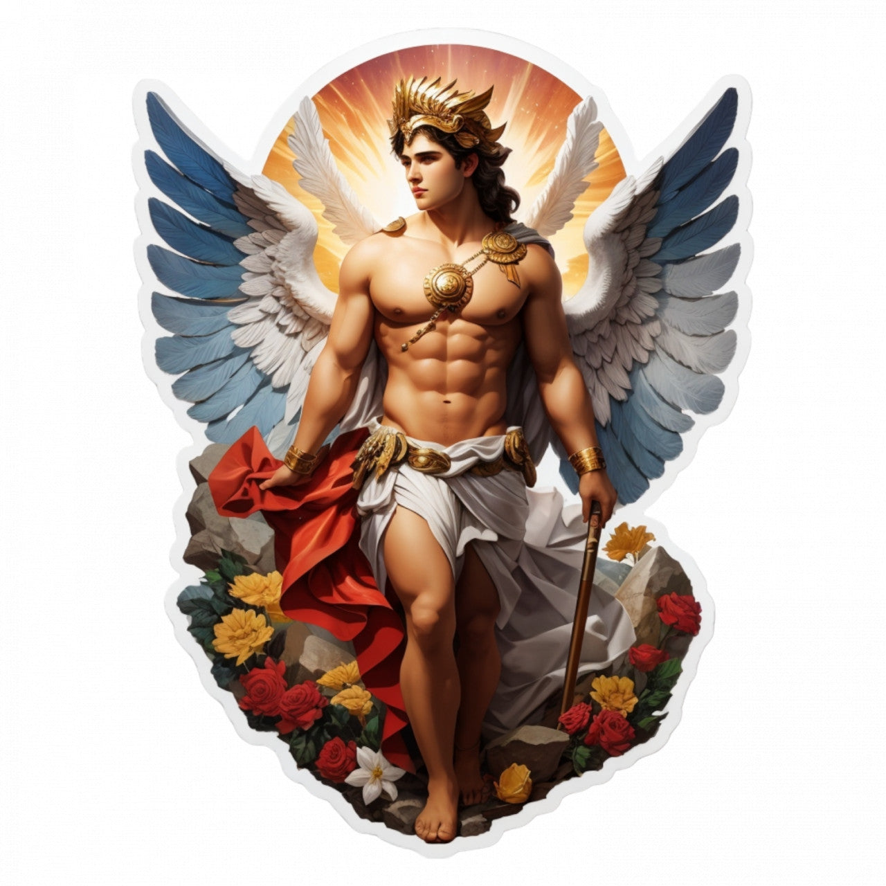 Set 2 bucati, Sticker decorativ, Zeul grec Eros cu aripi si tolba, Rezistent la apa, NO5225, 16 cm, Multicolor