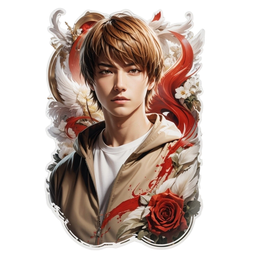 Set 3 bucati, Sticker decorativ, Baiat cu trandafir, Rezistent la apa, NO2112, 6 cm, Multicolor