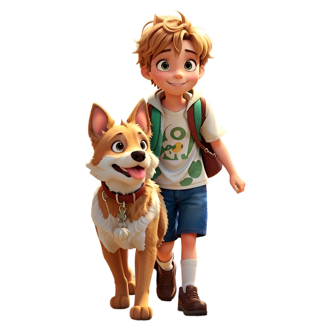 Set 3 bucati, Sticker decorativ, Baietelul si catelul, Rezistent la apa, NO1708, 6 cm, Multicolor