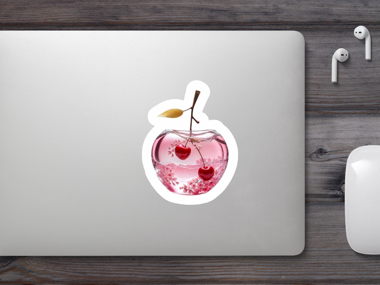 Set 3 bucati, Sticker decorativ, Bol cu cirese, Rezistent la apa, NO1762, 6 cm, Multicolor