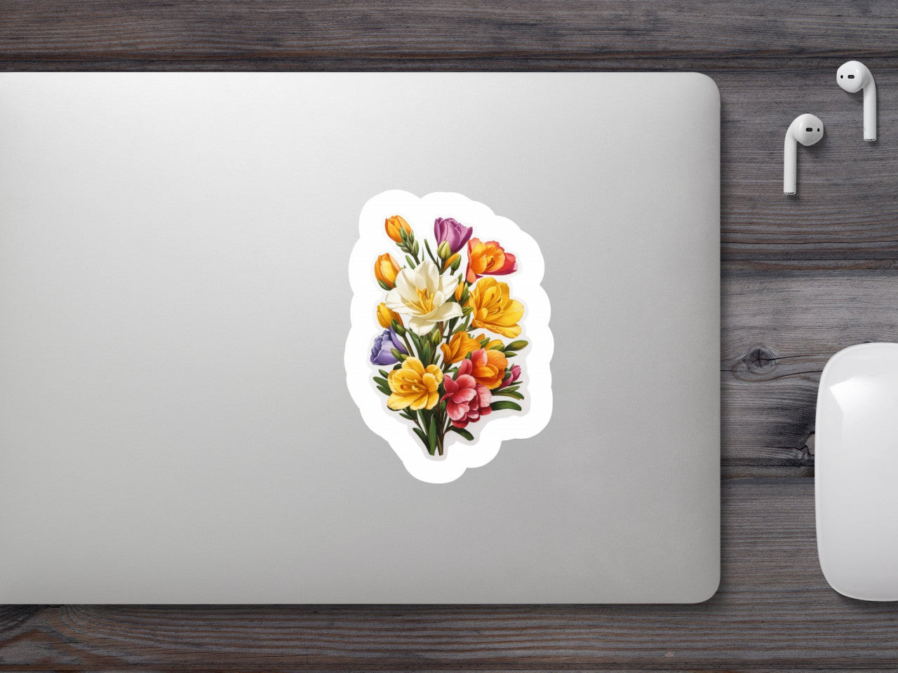 Set 3 bucati, Sticker decorativ, Buchet de frezii, Rezistent la apa, NO574, 6 cm, Multicolor