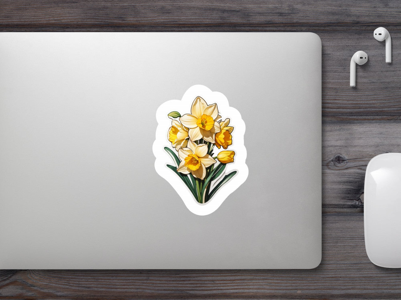 Set 3 bucati, Sticker decorativ, Buchet de narcise, Rezistent la apa, NO446, 6 cm, Multicolor