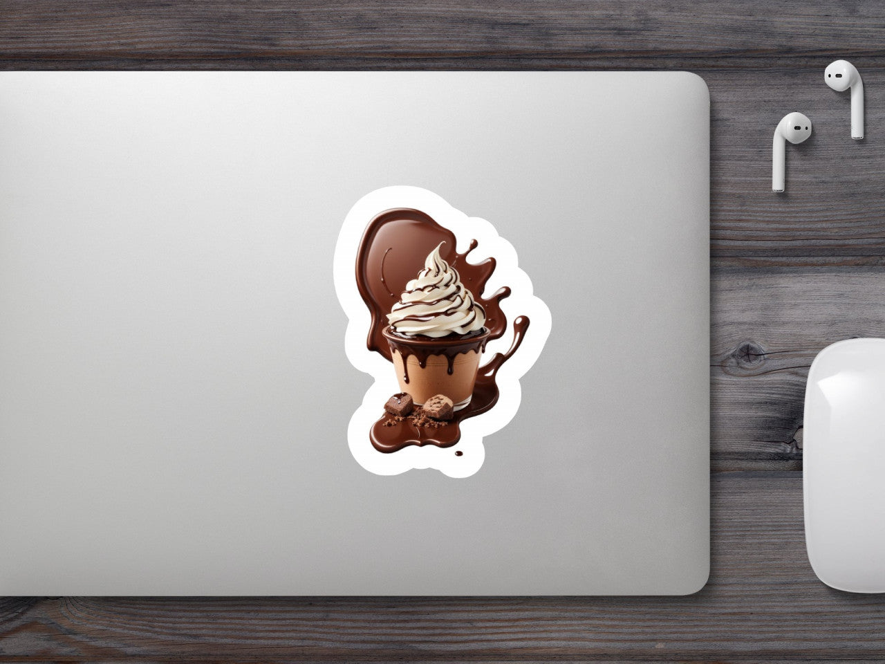 Set 3 bucati, Sticker decorativ, Cafea cu frisca si ciocolata, Rezistent la apa, NO2021, 6 cm, Multicolor