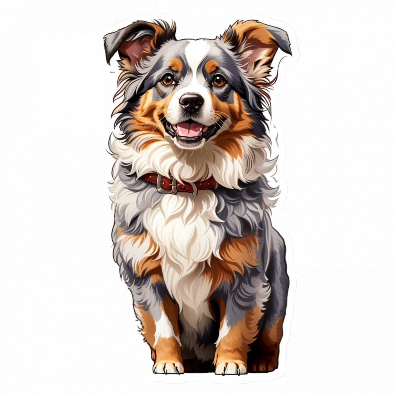 Set 3 bucati, Sticker decorativ, Caine ciobanesc american miniatural cu zgarda, Rezistent la apa, NO899, 6 cm, Multicolor
