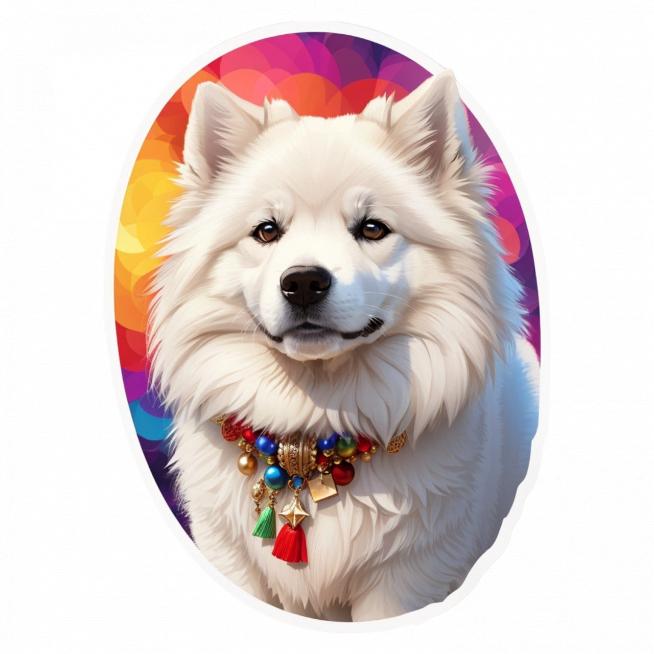 Set 3 bucati, Sticker decorativ, Caine Samoed cu zgarda, Rezistent la apa, NO1166, 6 cm, Multicolor
