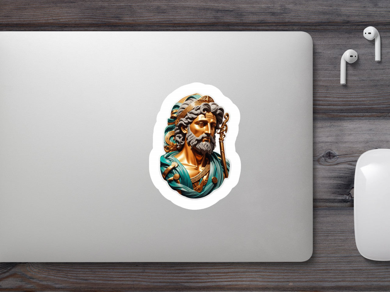 Set 3 bucati, Sticker decorativ, Cap zeul grec Asclepius cu sceptru, Rezistent la apa, NO142, 6 cm, Multicolor