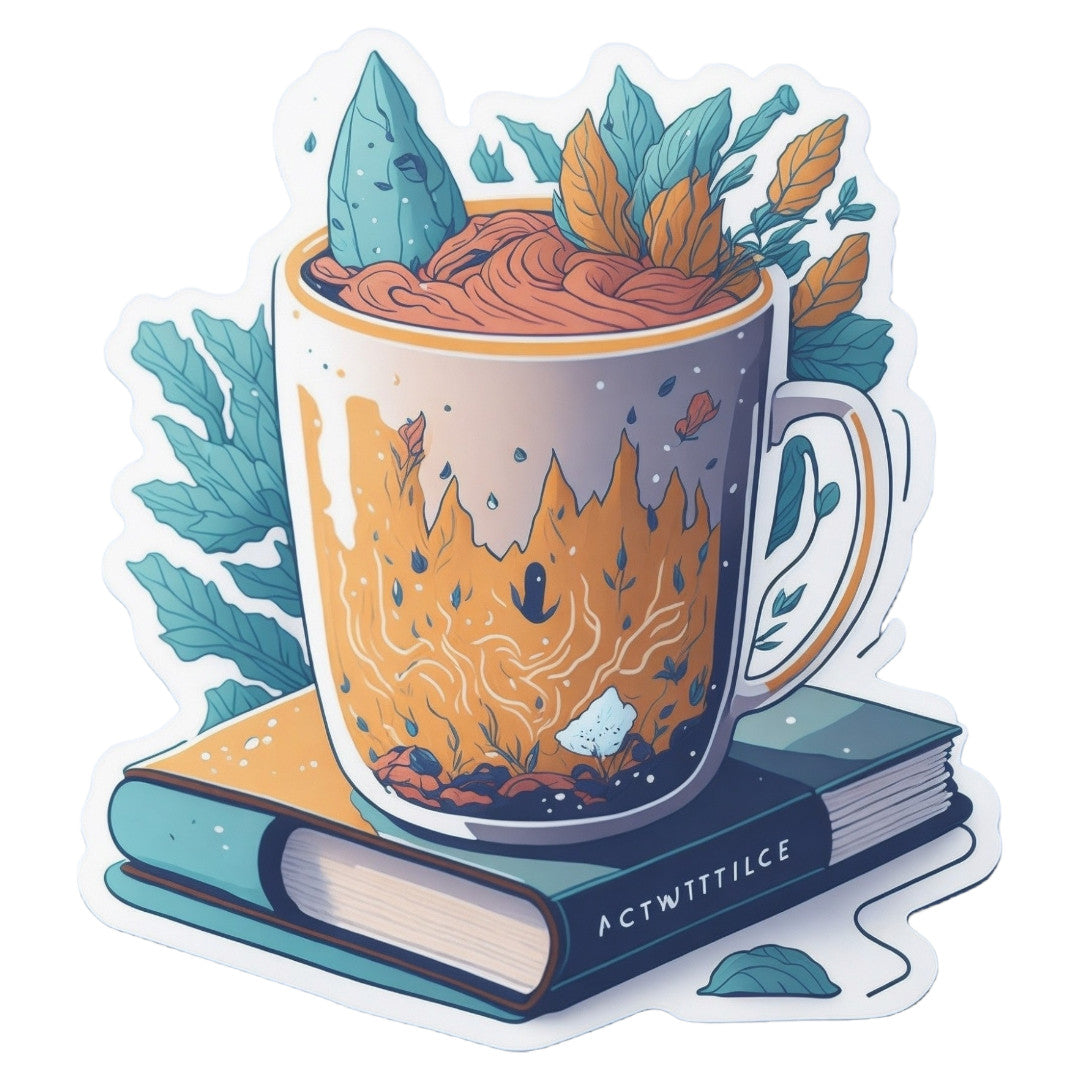 Set 3 bucati, Sticker decorativ, Carte si cafea, Rezistent la apa, NO1886, 6 cm, Multicolor