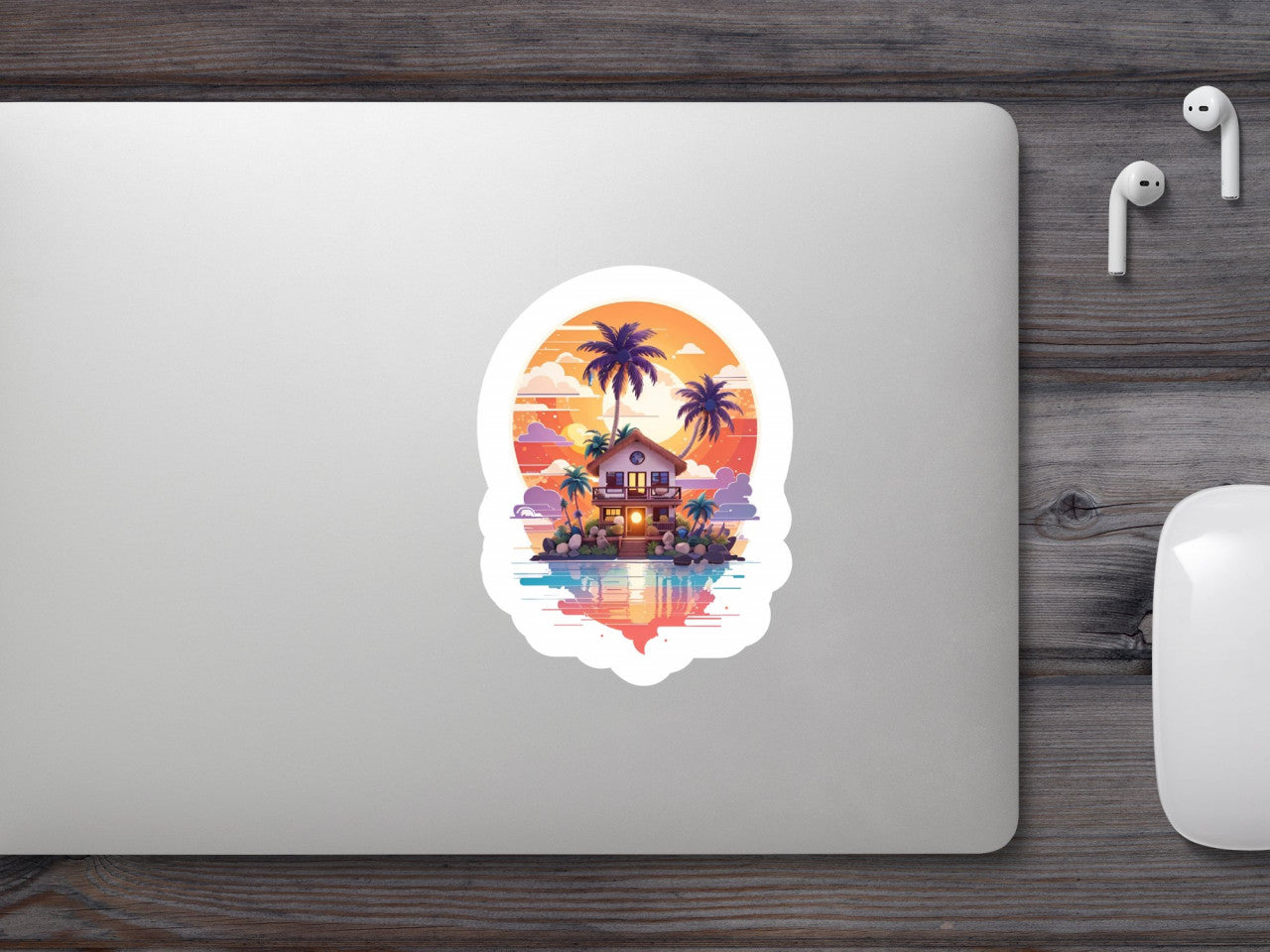 Set 3 bucati, Sticker decorativ, Casa de la mare, Rezistent la apa, NO1465, 6 cm, Multicolor