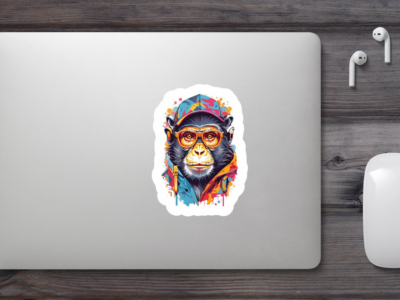 Set 3 bucati, Sticker decorativ, Cimpanzeul cu ochelari si sapca, Rezistent la apa, NO1481, 6 cm, Multicolor