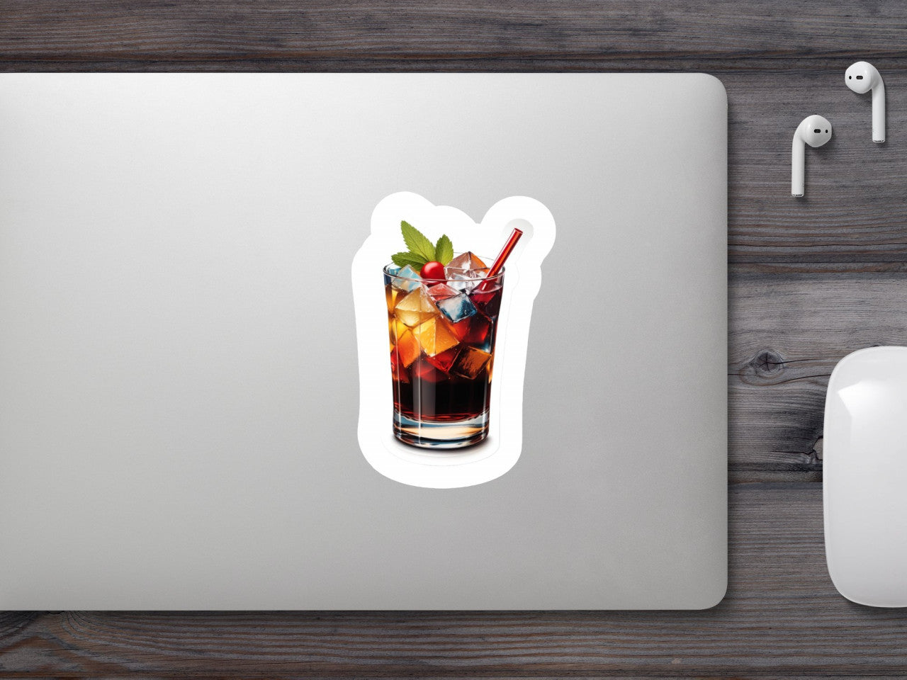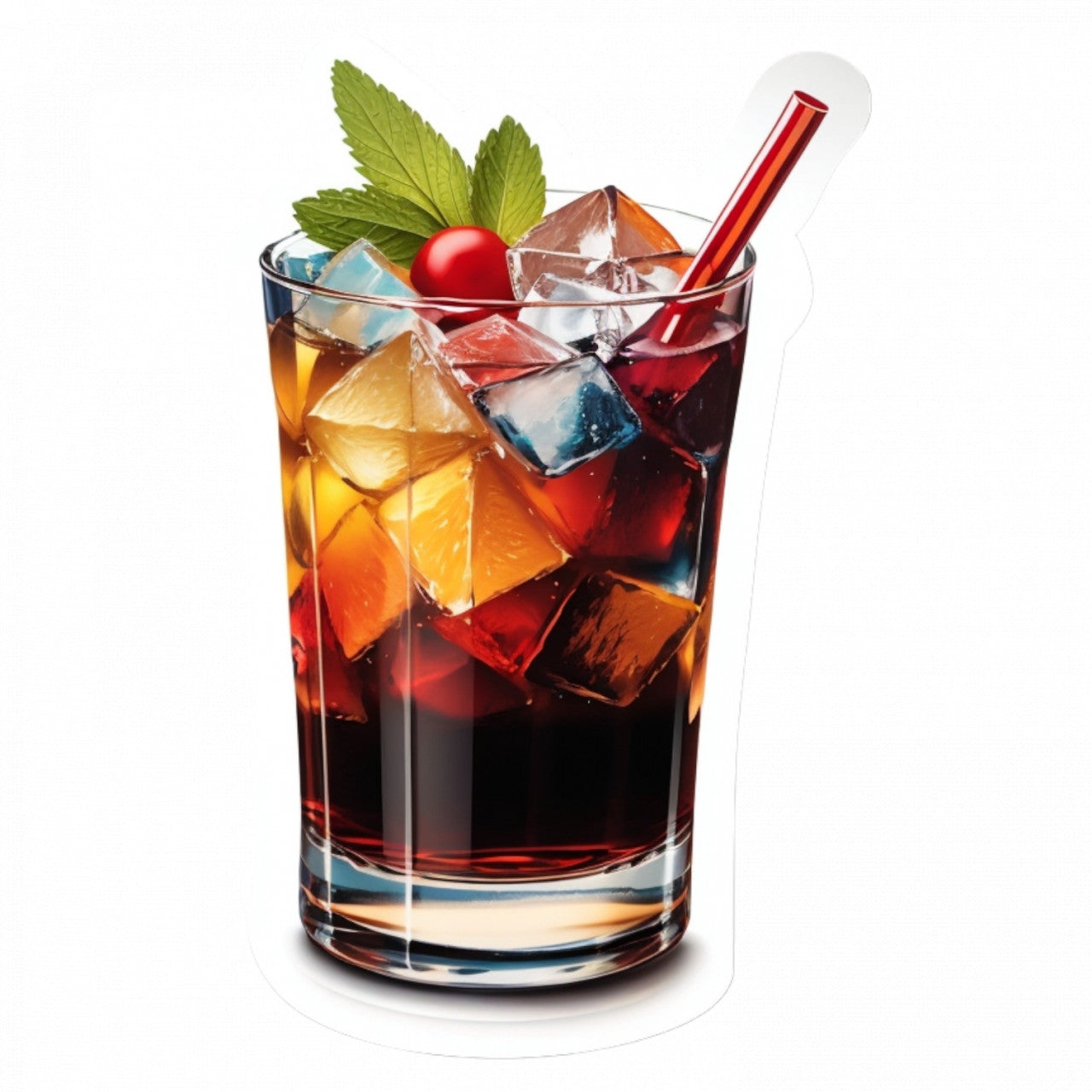 Set 3 bucati, Sticker decorativ, Cocktail cu gheata si menta, Rezistent la apa, NO18, 6 cm, Multicolor