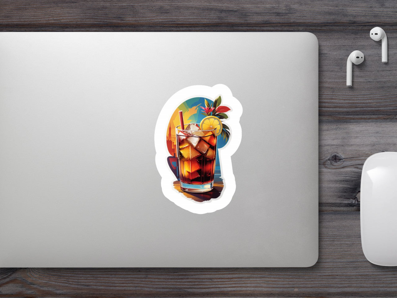 Set 3 bucati, Sticker decorativ, Cocktail Cuba libre cu lamaie, Rezistent la apa, NO434, 6 cm, Multicolor