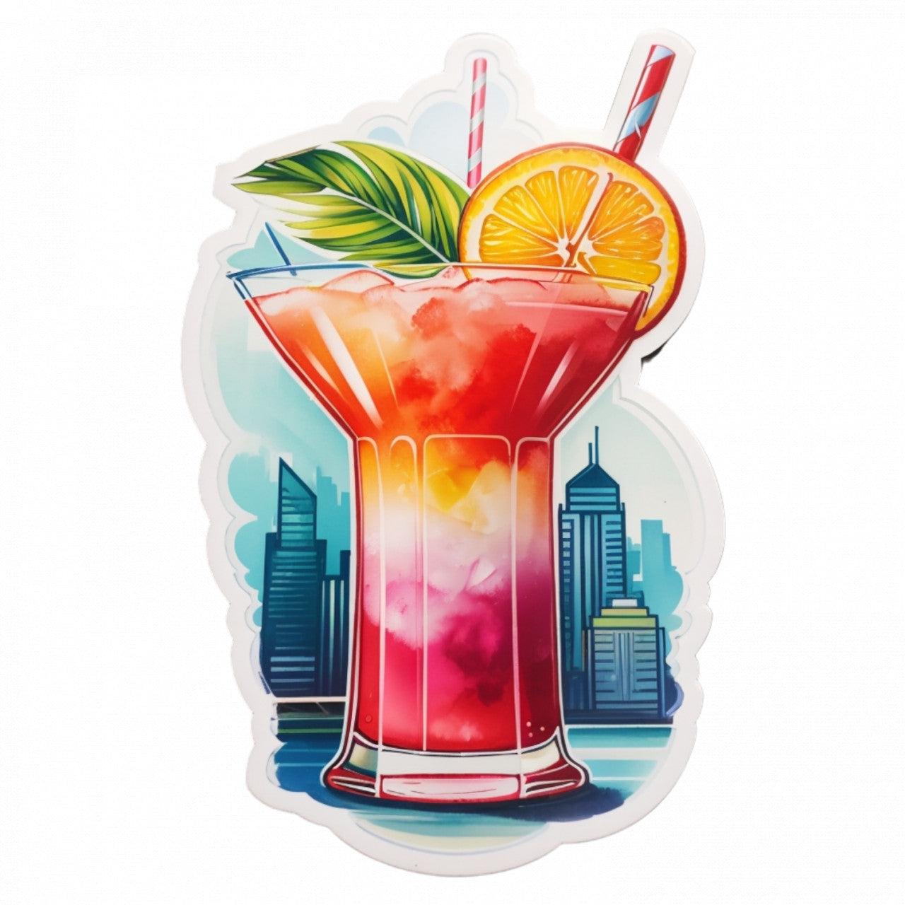 Set 3 bucati, Sticker decorativ, Cocktail Daiquir cu pai, Rezistent la apa, NO452, 6 cm, Multicolor
