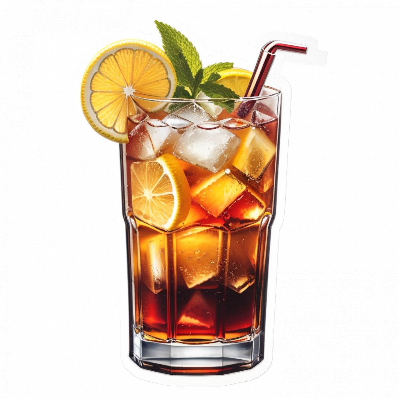 Set 3 bucati, Sticker decorativ, Cocktail long island ceai cu gheata, Rezistent la apa, NO821, 6 cm, Multicolor